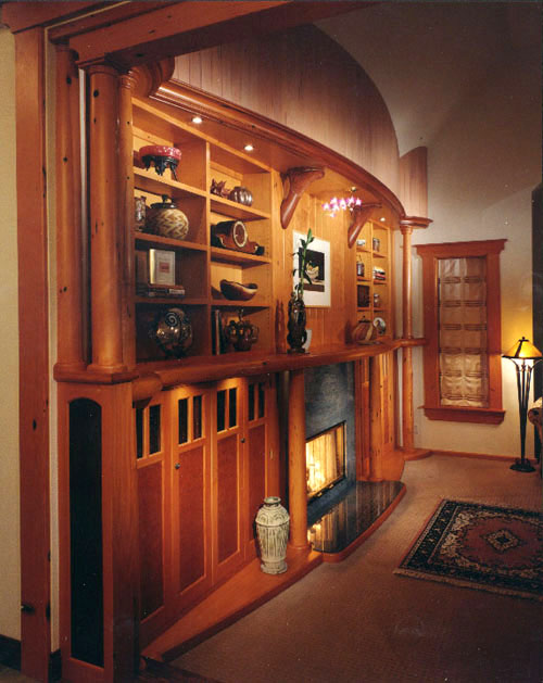 1. Built-in bookcase (made from recycled wood) finished to appear as originally finished historic piece.