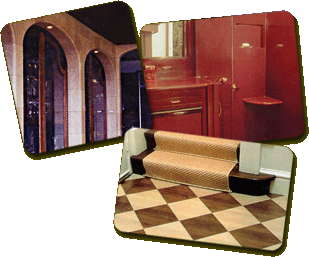 4. Finished by creating the illusion of parquet floor, superimposed on regularly slatted maple flooring. Designer: David Anthony Easton.